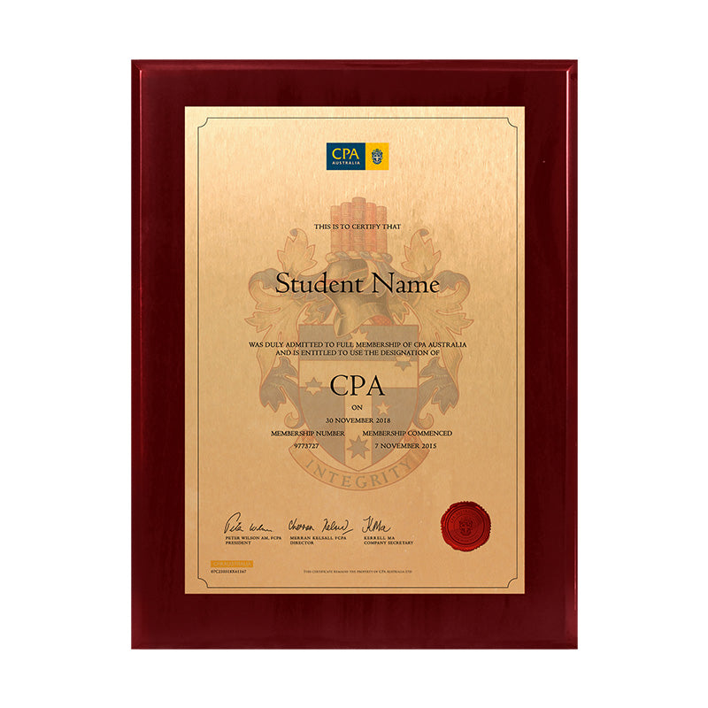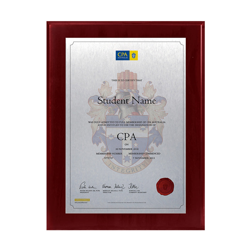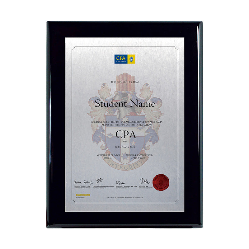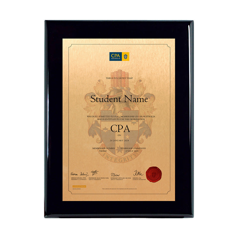 We will require a copy of your certificate in order to produce your plaque. Please email a copy to info@gfp.com.au. If you haven’t received your certificate from your university yet, please let us know, and we will keep your order on hold in the meantime. Your certificate will then be reproduced onto your plaque.