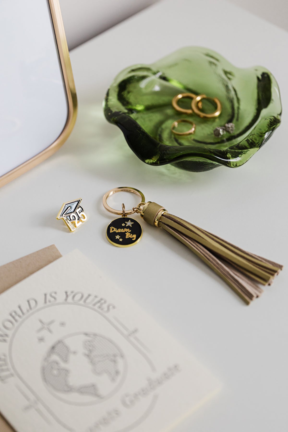 The ‘Dream Big’ Tassel Keyring is 10cm long and is available in Gold, Silver and Black.