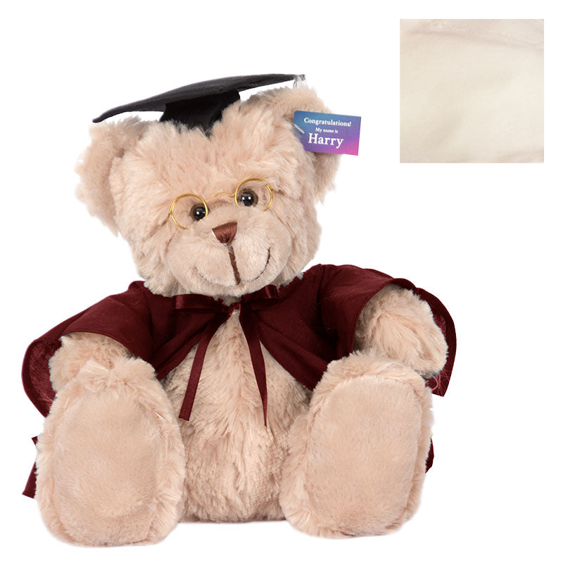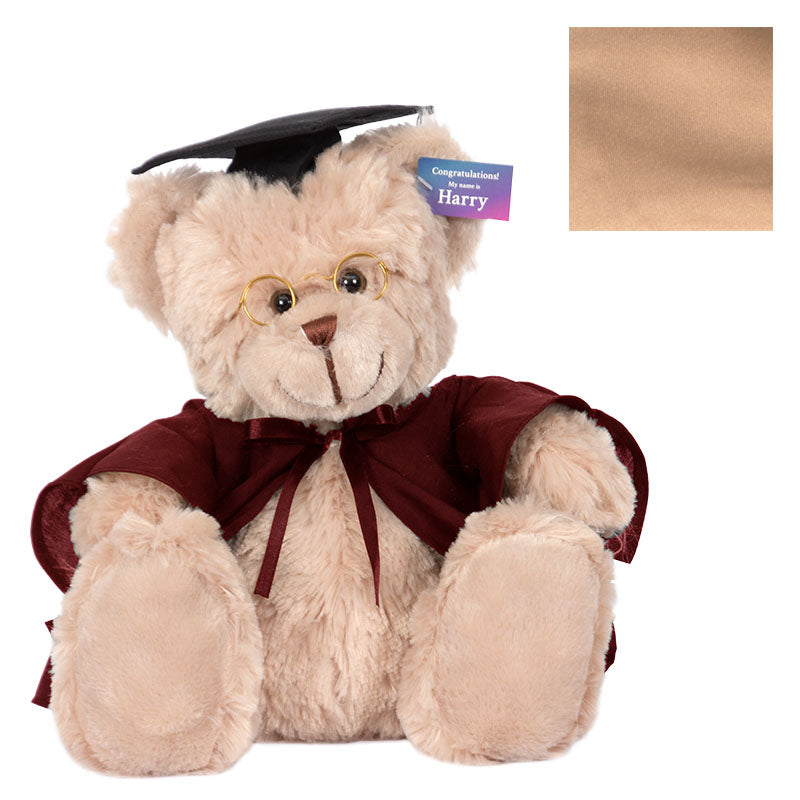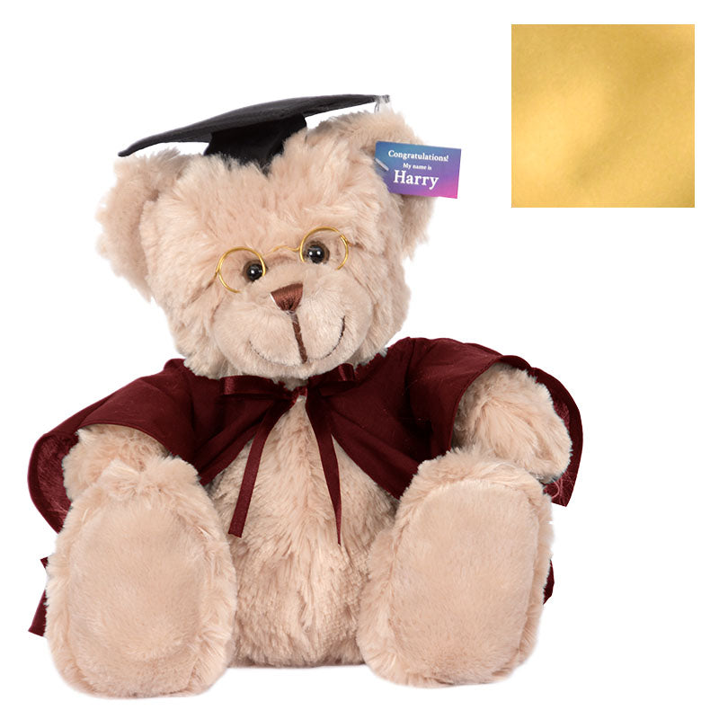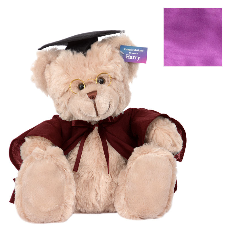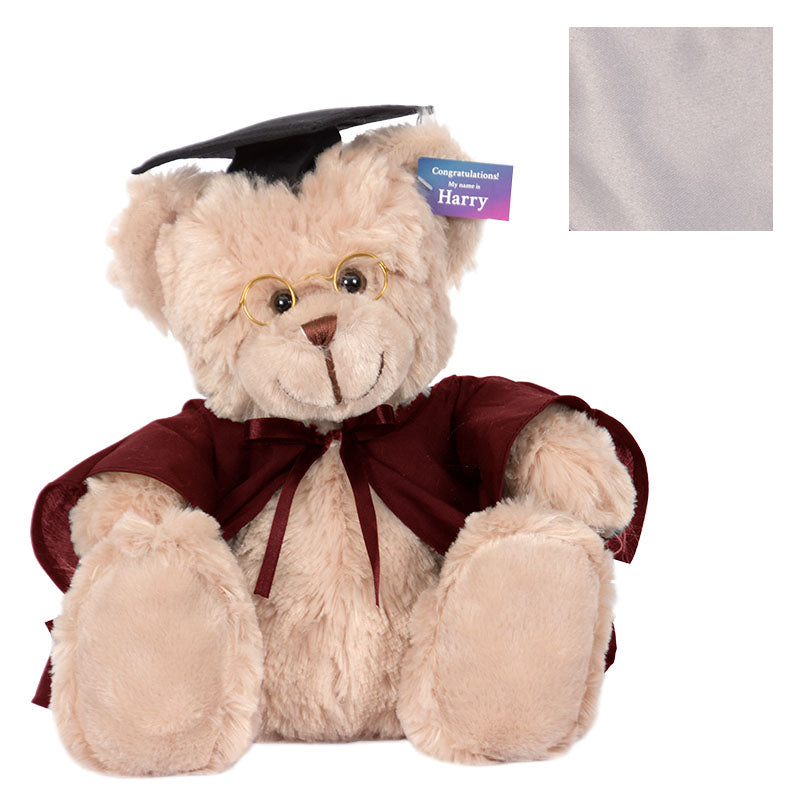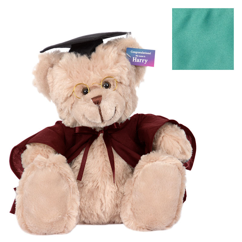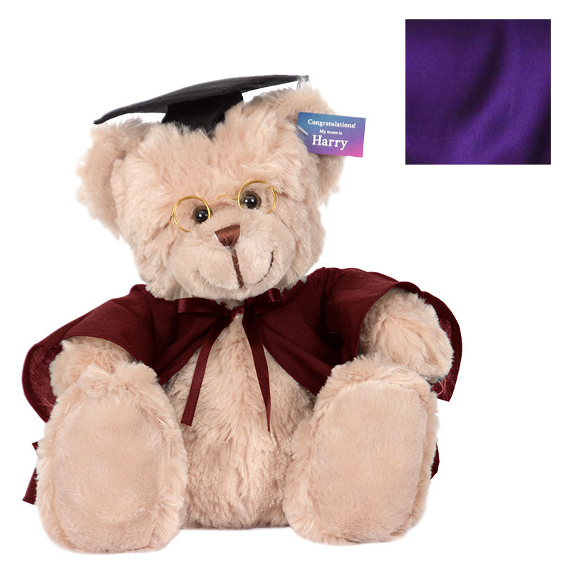 At 40cm high, Cuddly Harry bear has soft light brown fur, and comes complete with round spectacles, graduation cap, robe & hood in your faculty colour