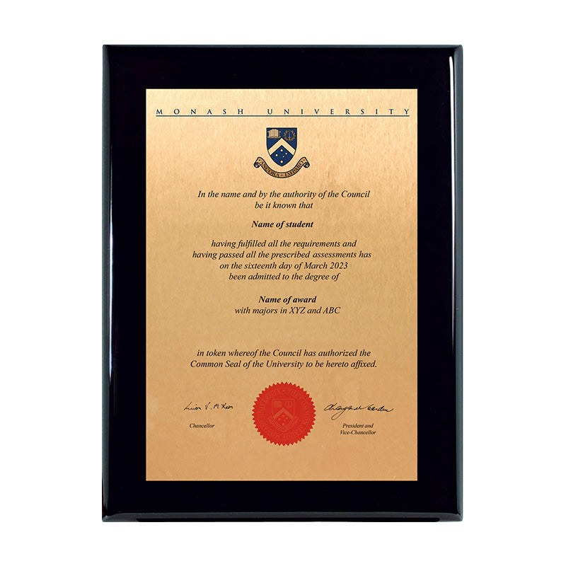 - Monash Faculty Hood (turquoise academic hood lined in your degree colour Victrix Blue)