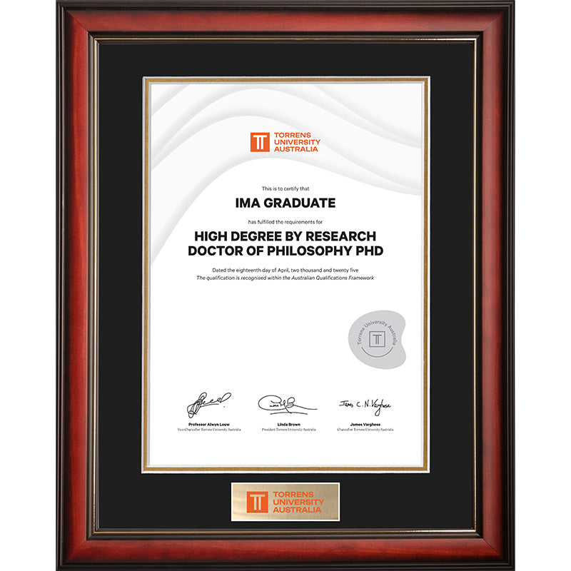 GFP Graduations are your University approved supplier of testamur frames. We proudly provide guaranteed quality frames made in Australia. Mat boards are acid free to ensure your valuable degree is preserved.